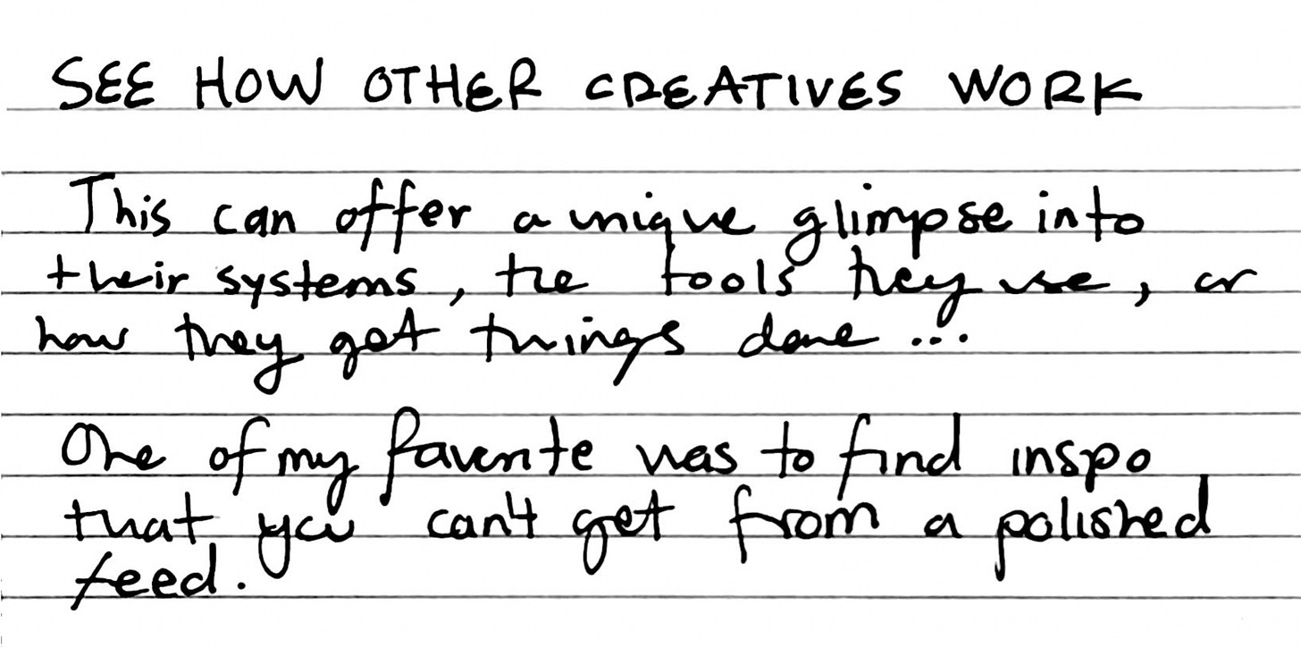 Today I bring you the fourth installment of my series: Where to find inspiration outside of the internet. I started this series last year, and it has become one of my favorite sections of the newsletter. I decided to try something different and wrote it all by hand this time, along with illustrations and journal scans. Thanks to Allie Sullberg and Estee Zales for sparking inspiration to create my own analog newsletter!